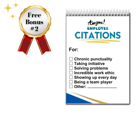 They’re called Awesome Employee Citations™. Just check a box, stick it on your employee’s desk, and in less than 5 seconds you’ll make them feel appreciated for days.